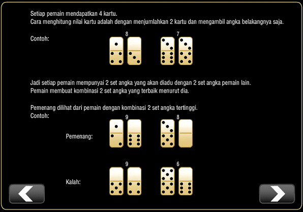 2. Perhitungan Kartu Domino QQ adalah dengan cara menjumlahkan 4 buah kartu yang diberikan, lalu kita harus menjumlah 4 kartu     menjadi 2 pasang nilai.
